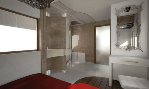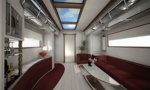 Long de 12 mètres et lourd de 20 tonnes, l'engin propose plus d'espace à bord qu'un petit appartement avec quelques 40 mètres carrés annoncés par son constructeur et une petite terrasse au dessus, le tout avec un style intérieur particulièrement travaillé. Il possède une chambre, une autre pièce et un espace de séjour à la décoration très particulière.